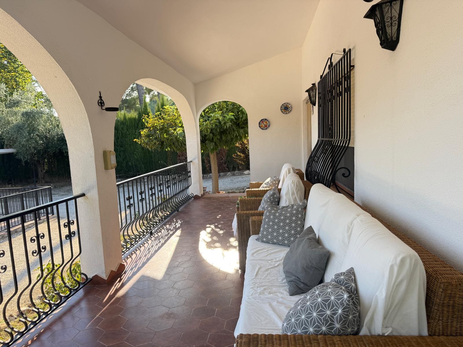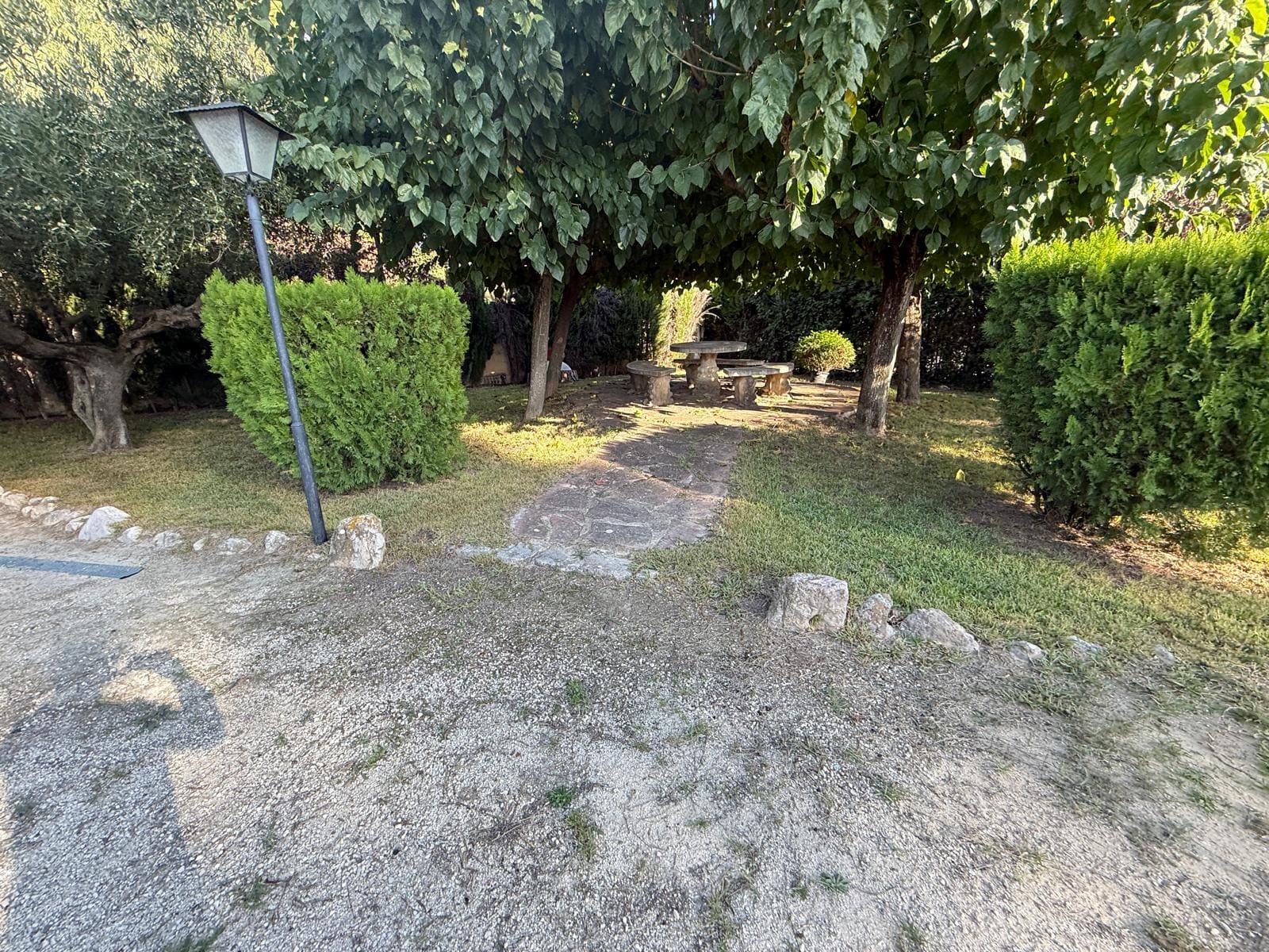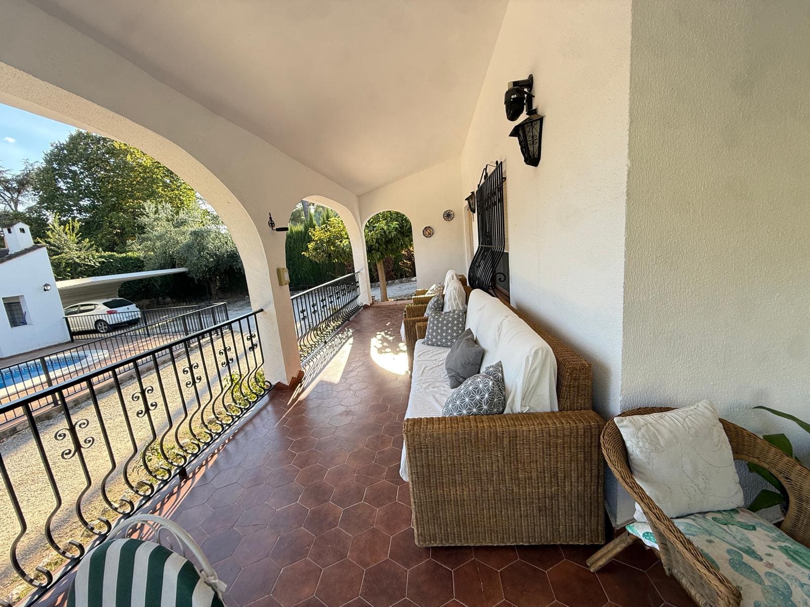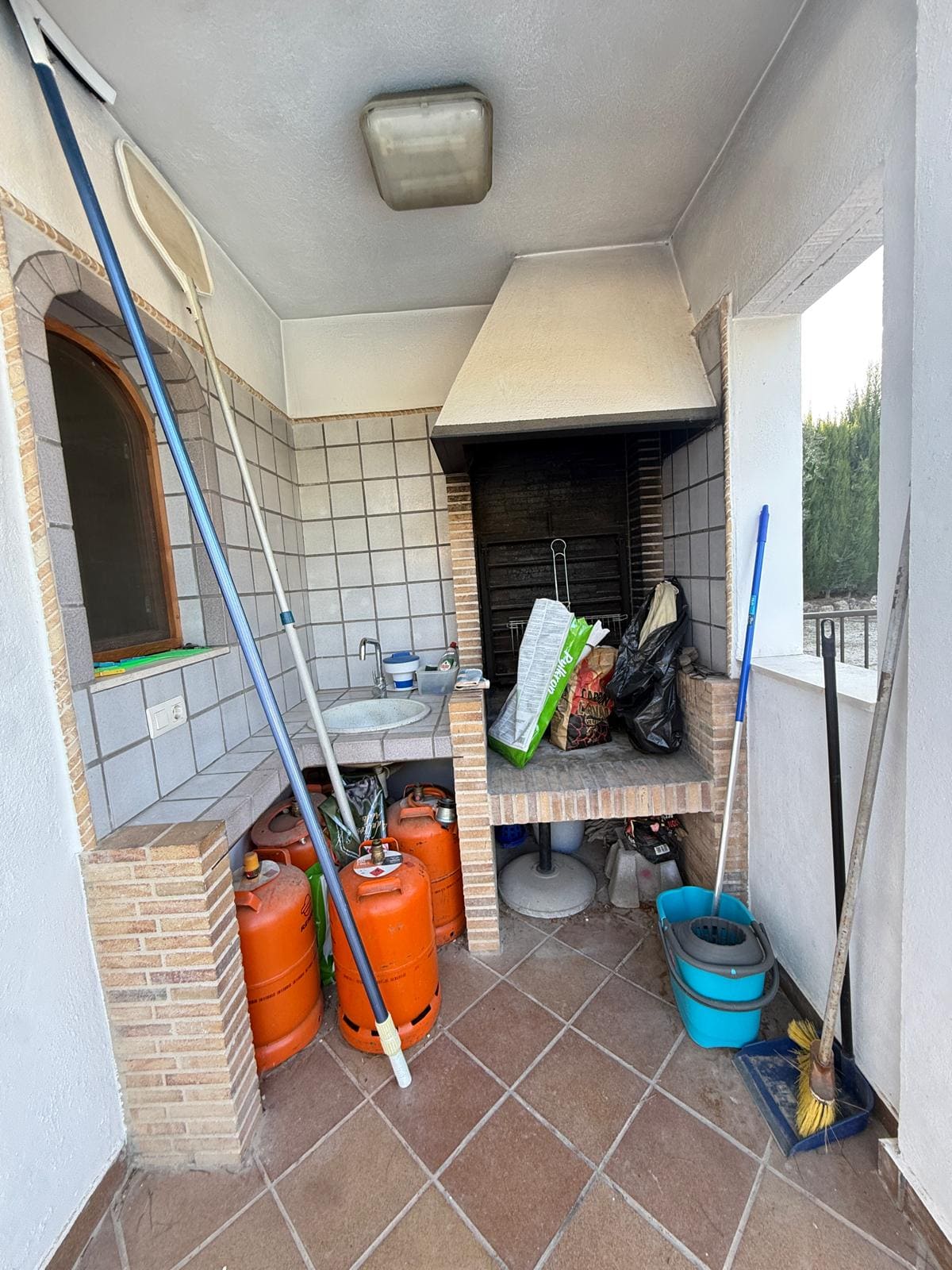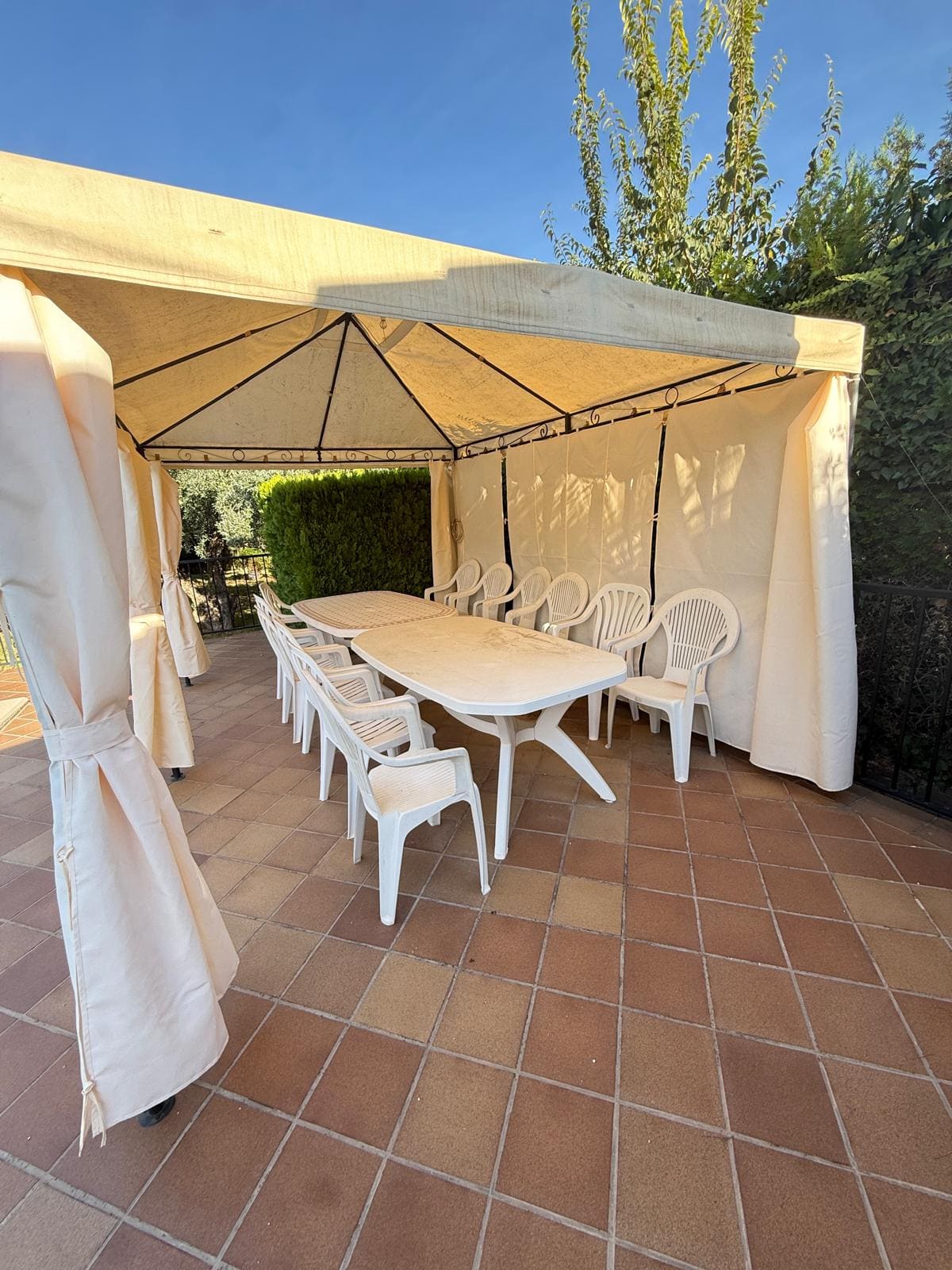 En el exterior, la parcela ofrece todo lo necesario para disfrutar al aire libre: piscina, zona de barbacoa, terreno con árboles frutales y cerramiento completo con muro, además de puerta automática de acceso.