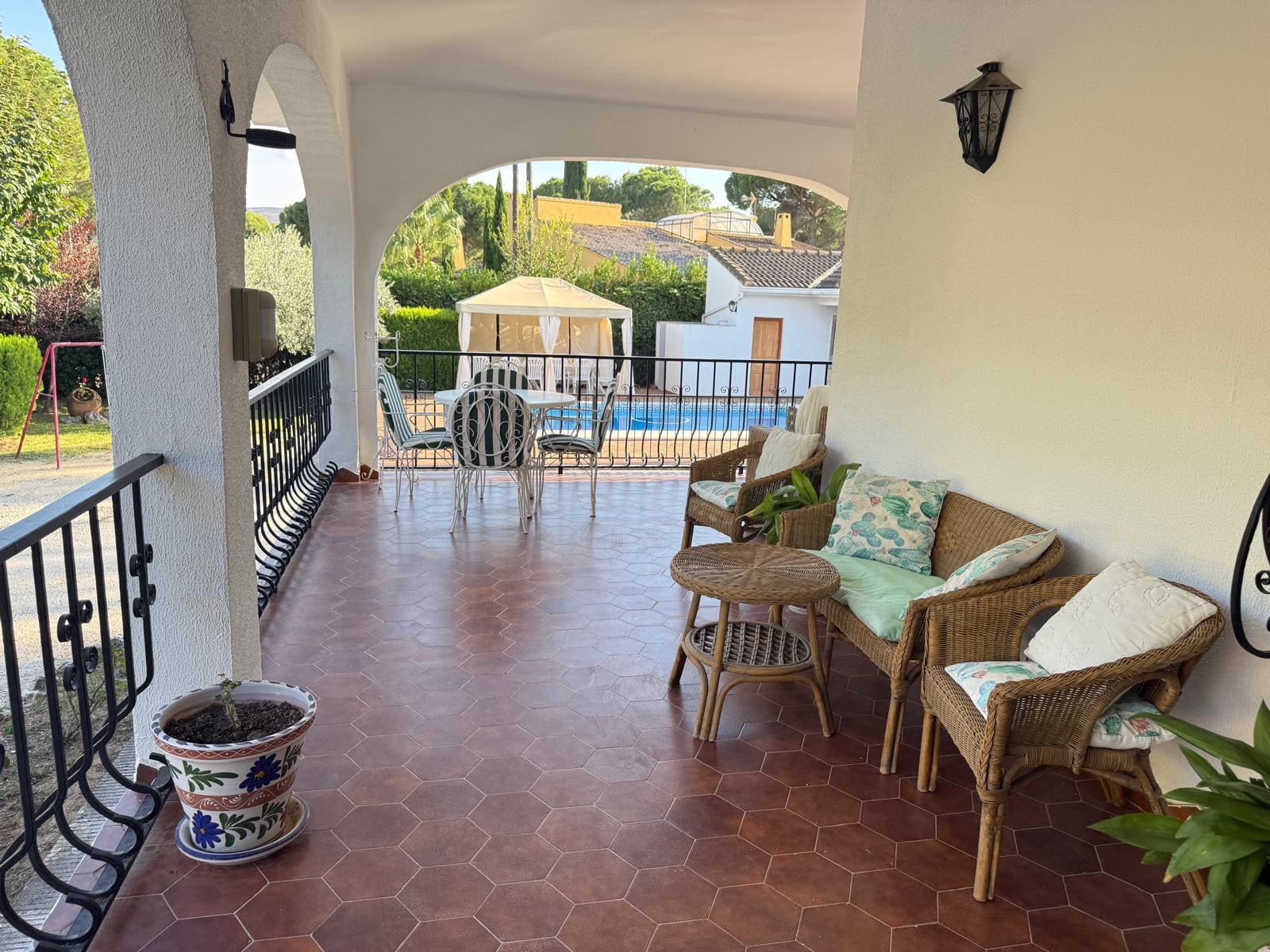Se vende chalet en zona tranquila, con una sola planta y un bonito porche cubierto que da la bienvenida a la vivienda.